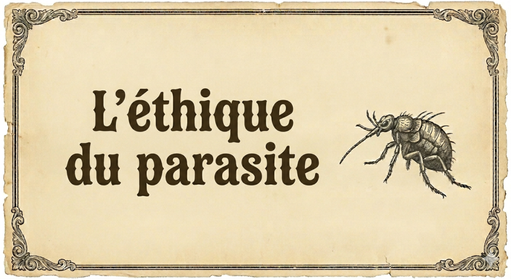 Rien ne semble arrêter ce suceur d’énergie, cet aspirateur à générosité. En toute tranquillité, le parasite s’acquitte de toute gêne, de tout remord et de toute conscience. Il présente la situation comme normale, sous couvert d’apporter une quelconque plus-value à sa propre position.
